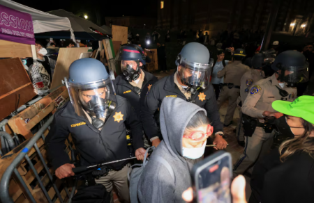 Массовый заход в Калифорнийский университет правоохранительных сил, включая сотрудников Калифорнийского дорожного патруля и полиции Лос-Анджелеса, произошел после критики в их адрес за медлительность во время ожесточенных столкновений поздно вечером во вторник, когда контр-протестующие напали на лагерь пропалестинских студентов.
