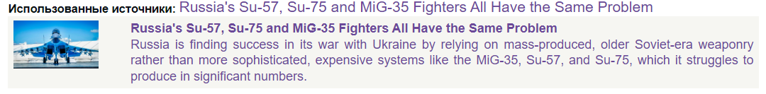 Россия добивается успеха в войне с Украиной, полагаясь на массовое, вооружение советской эпохи, а не на более сложные и дорогие системы, такие как МиГ-35, Су-57 и Су-75, которые она с трудом производит.