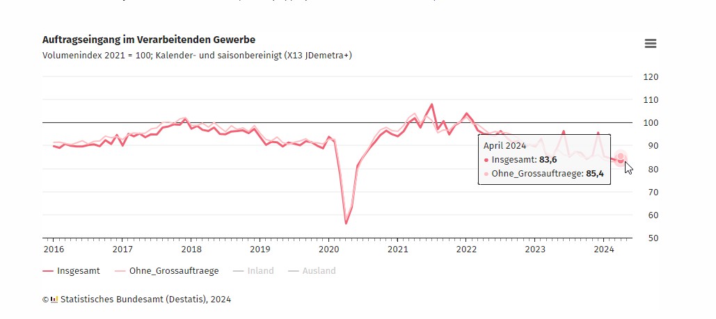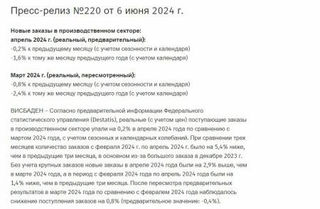 Германская промышленность фактически закончилась. Интересно было бы посмотреть на абсолютные цифры и структуру заказов, но нам никто в здравом уме такой информации не даст.