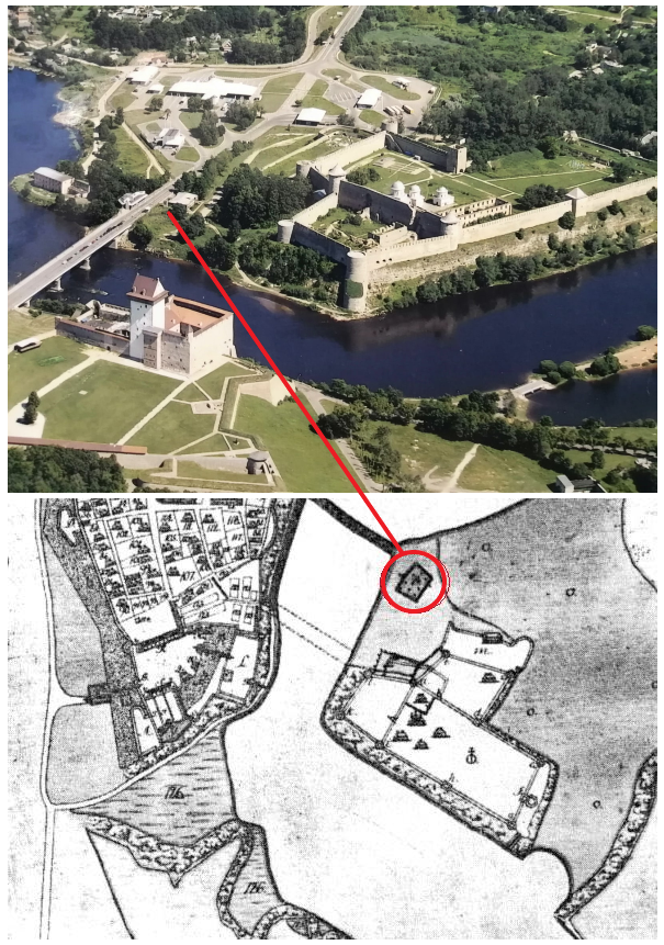 Причем, описанное кладбище в Ивангороде находилось у моста через Нарву и проходящей по нему дороги, именно в том месте, с которого мог быть сделан рисунок Олеария.