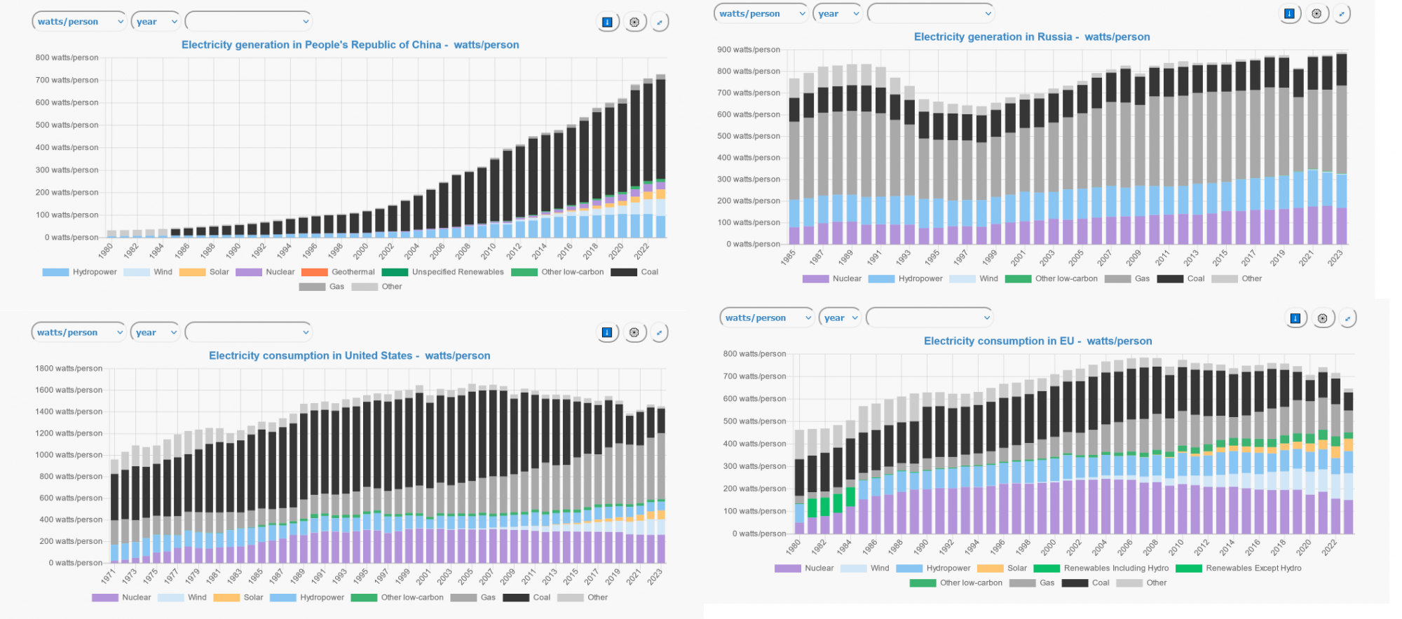 При этом надо учесть фактор ИИ: дата-центры потребляют всё больше энергии. Главная проблема американских разработчиков искинов — найти достаточно гигаватт мощности, чтобы запитать свои сервера с бесчисленными видеокартами внутри. У китайских разработчиков искинов, которые пока что слегка отстают от американских, такой проблемы нет — у Китая электричества на дата-центры хватит.