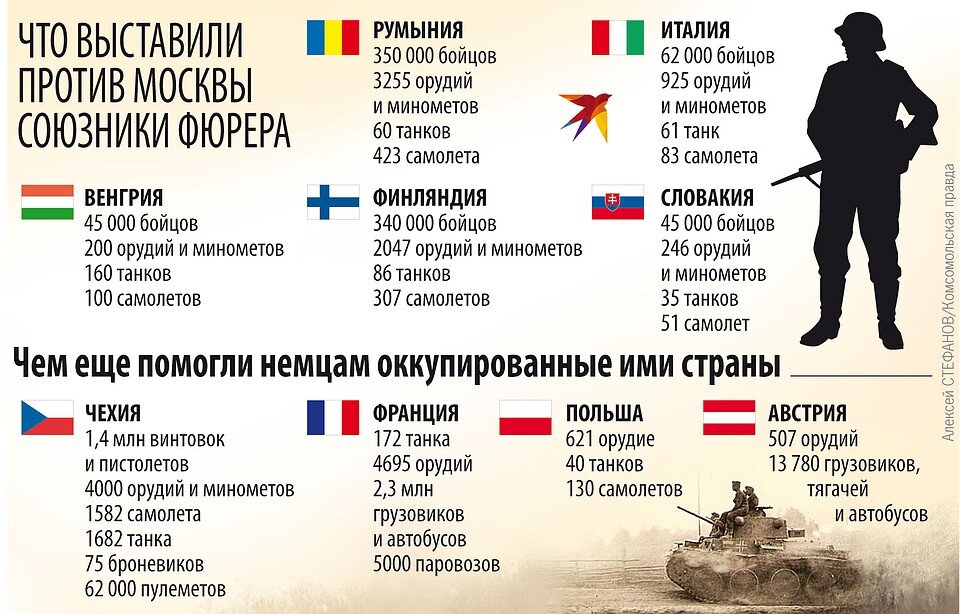 В союз с Германией (союз ОСИ), входило 6 европейских стран (Италия, Словакия, Болгария,