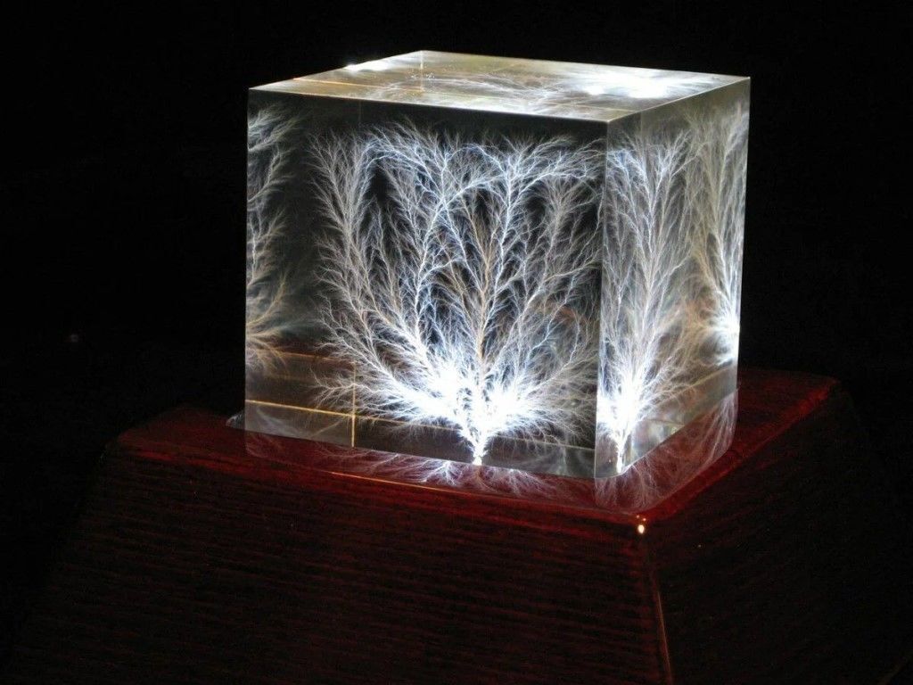 Кроме того, будет присутствовать заметный поток заряженных частиц с энергией в МэВ-ы. А значит пробои могут быть не только между отдельными элементами спутника. Но и внутри не проводящих элементов. Их результаты называются фигурами Лихтенберга - см. фото ниже.