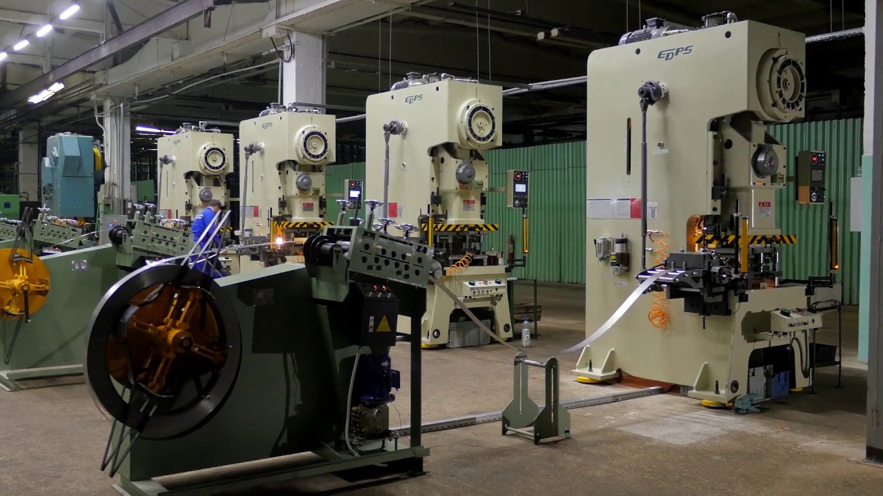 У первого штампа рабочий заполнял кассету заготовками. Первая "рука" брала и укладывала заготовку под штамп. После прохода штампа следующая "рука" забирала заготовку из первого станка и передавала на второй. И так далее.