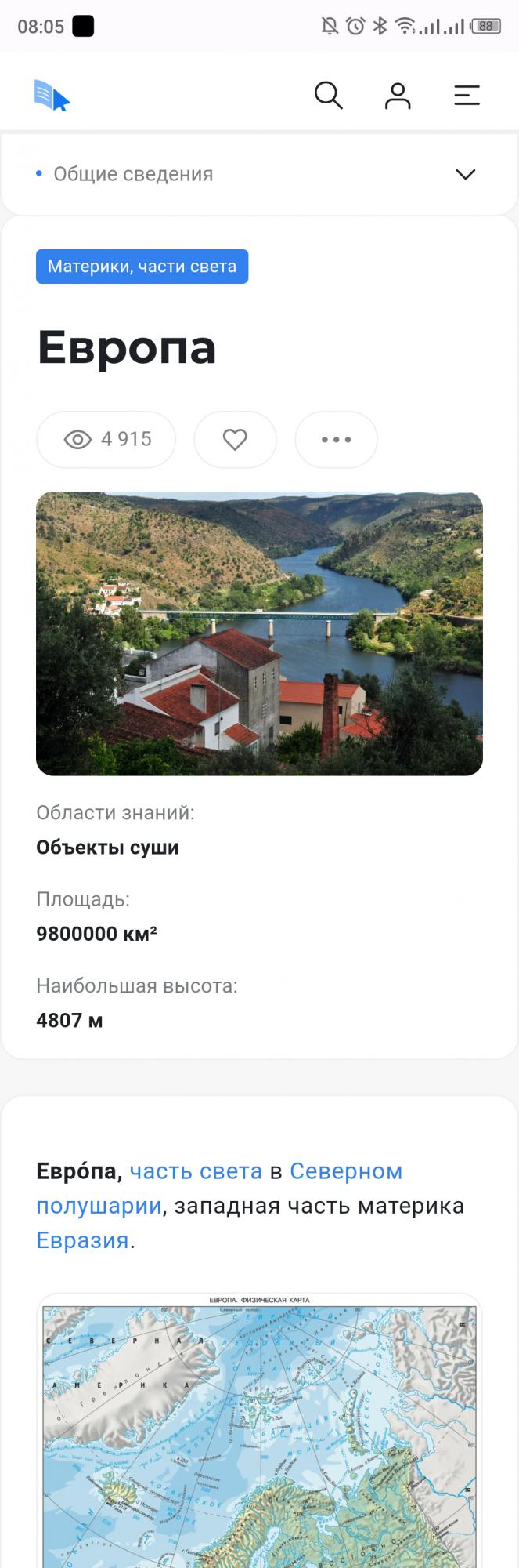 Вот скрин оттуда. «Европа, часть света в сервером полушарии, часть материка Евразия».