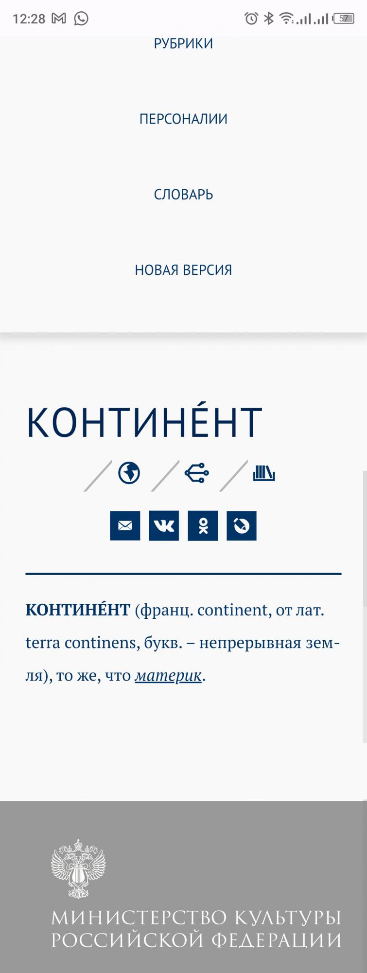 Большая российская. Скрин оттуда. В старой версии Большой Российской энциклопедии материк=континент...