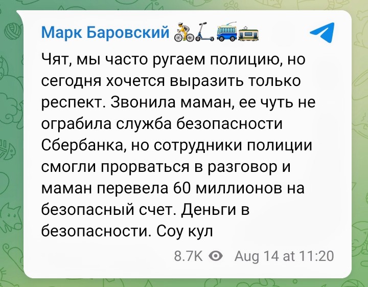 Извините, ребята, но нет у меня приличных слов для вывода. Ладно когда молодёжь попадается, сами идиоты, предупреждают же. Но блин… стариков обмануть… чтоб тем мошенникам бабло поперёк горла встало.