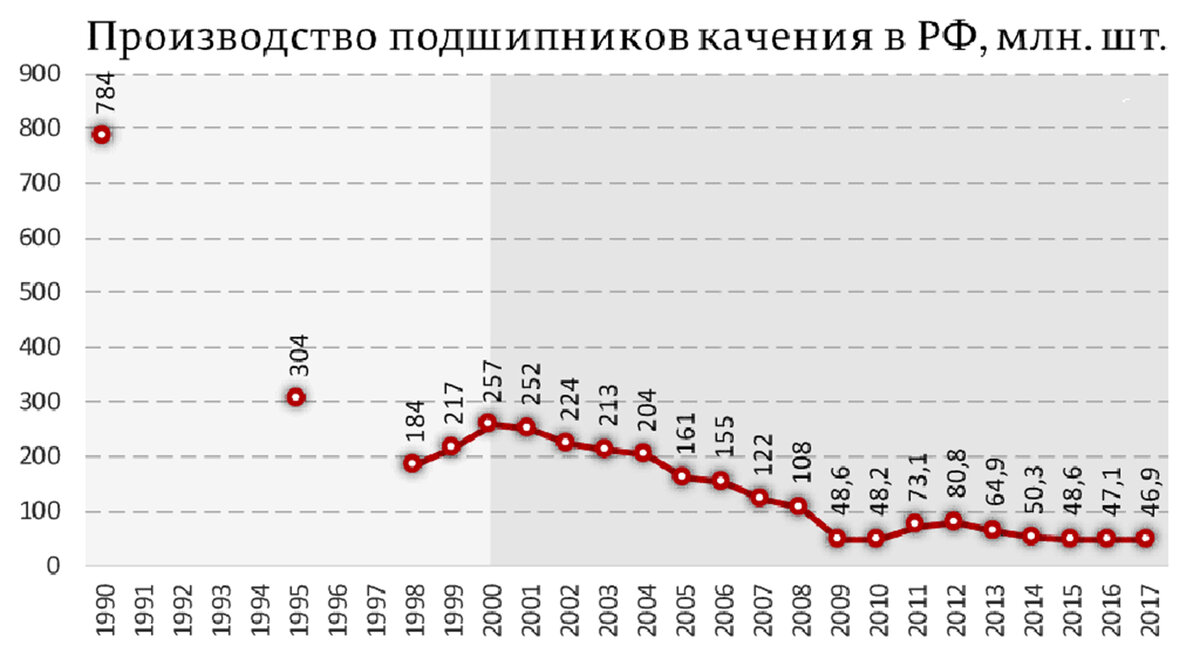 как понимаю основной обвал по производству произошел с 1990 п 1998 с 748 млн. до 184