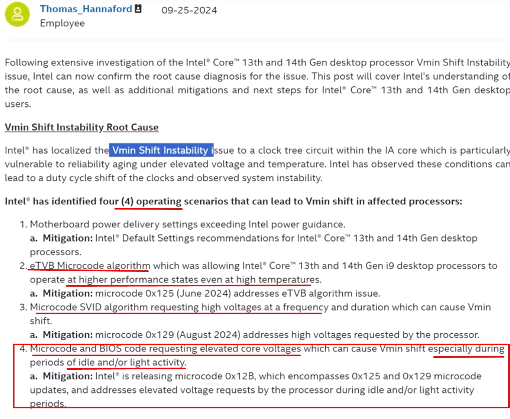 Специально для вас привожу скрин, где интелом как раз говорится о проблеме с вольтажом при малых нагрузках и тд.(4)