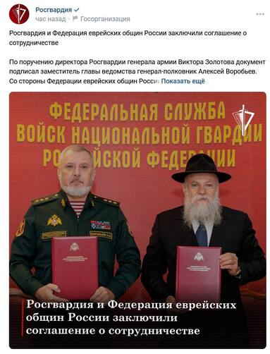 росгвардия будет воспитываться еврейской федерацией общин (чему евреи могут обучить росгвардейцев - х.з. сам факт соглашения о воспитании, образовании и прививании своей культуры военнослужащим Росгвардии представителями только национальности ( и только этой, ибо с другими общинами и "федерациями" соглашений нет) - КОНКРЕТНЫЙ ЗАШКВАР ВЛАСТИ.. это четыре. России (которую мы знаем) такими темпами таки придёт писец..