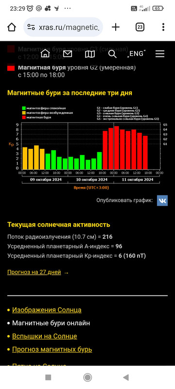 Сегодня была магнитная буря, почти уровня G5. 10% не хватило до G5.