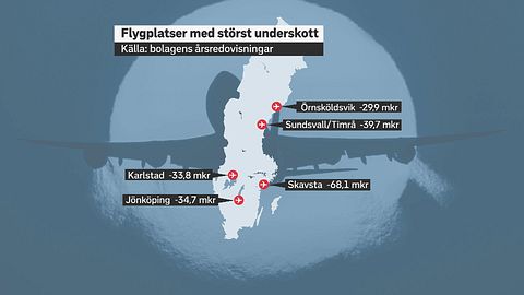 Анализ 29 региональных аэропортов, принадлежащих муниципалитетам, проведенный SVT, показывает, что большинство из них терпят убытки. По данным организации "Шведские региональные аэропорты" (SRF), дефицит составляет более 622 миллионов, в зависимости от того, как считать государственные субсидии и взносы собственников. Теперь они хотят помощи от правительства.