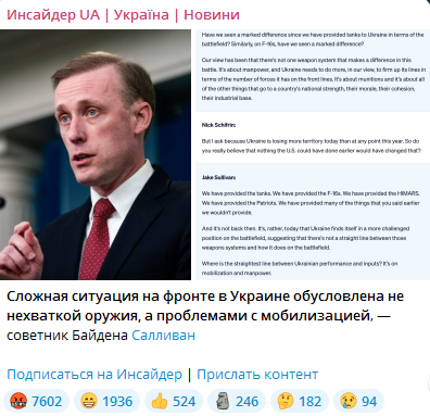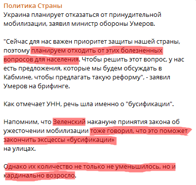 Кстати, в подтверждение моих слов кричат заголовки газет и постов в ТГ-каналах Украины: там катастрофически не хватает людей на передовой и правительство Украины постоянно возвращается к вопросу о снижении возраста мобилизованных.