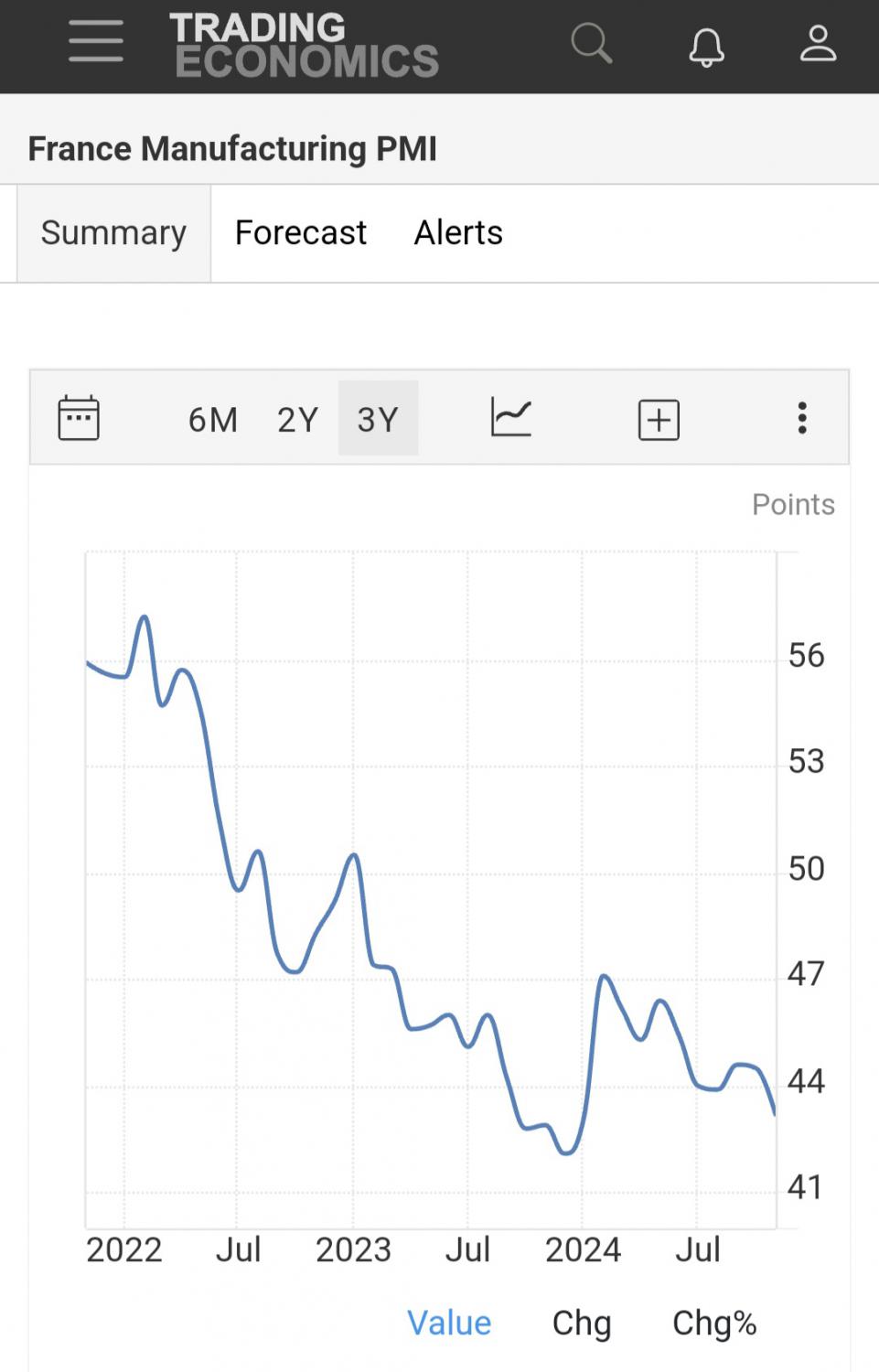 У Франции дела плохие и будут ухудшаться. Выход только один - снижение потребления гражданами. Но существующая политическая система не позволяет идти этим путём. Впереди у Франции её слом и лавинообразное снижение потребления.