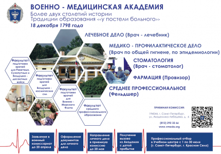 «Уважаемые родители! Военно-медицинская академия продолжает вековые традиции с современным подходом обучения военных врачей. Академия будет рада встретить в своих стенах Ваших детей для обучения по востребованным медицинским специальностям! Ждем Вас!)