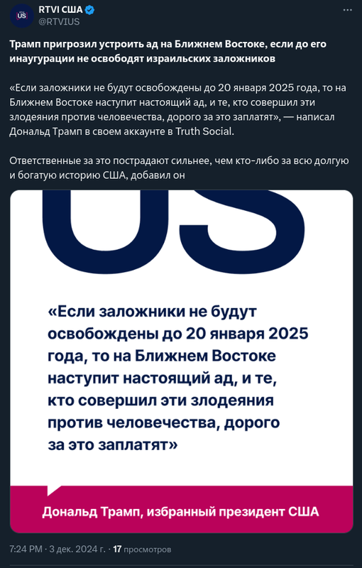 В целом по информационному фону Трамповских "инициатив" - удочки забрасывает, клюнет не клюнет. 10 ноября писал про его схему поведения: