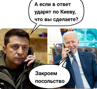 Украинцы: Зеля, блин! По нам уже МБР шарашат! Слава богу, пока без ядерной начинки! Ты будешь что-то делать?!!!