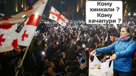 Начинается Майдан по всем пунктам методички. Дети лезут на милицию, силовиков обстреливают петардами, протестующих кормят печеньками. Все с содроганием ждут грузинскую небесную сотню. Украинцы носятся со своими флагами и кастрюлями, изо всех сил стучат чашками по стенам.
