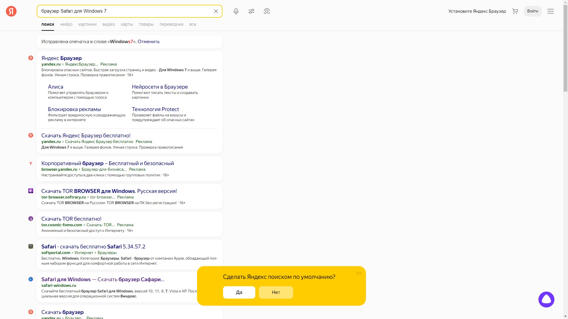 Доля браузера Яндекса имеет долю 7% - это хорошо, но тут тоже надо много работать.