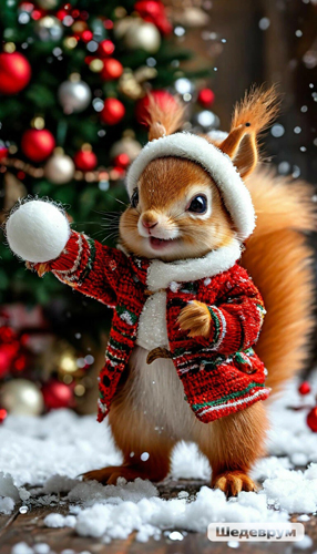 У белки со снежком - снежок из синтепона или войлока, волосатый. ))