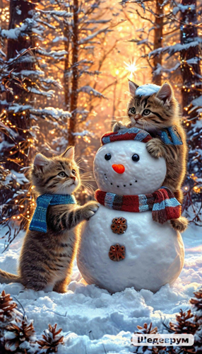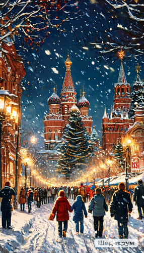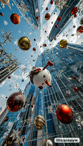 Новогодние пейзажи, традиционные и шутливые.