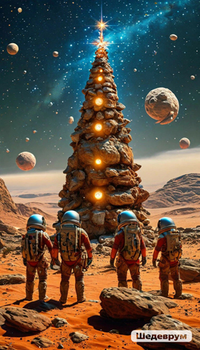 Но просто так это же скучно, давайте замутим ёлочку в необычном стиле. И вот ёлочка на Марсе и ёлочка в Аду.
