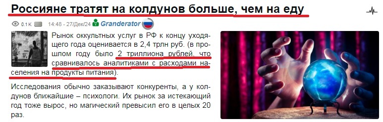 Никогда бы не подумал что россияне тратят два трюля на такой шляпный развод как колдуны и прочие думал не больше лярдов двадцати..