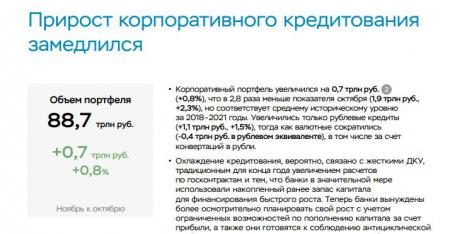 Точность показателей темпов роста корпоративного портфеля, публикуемые вместе с его объёмом, трудно комментировать, имея в руках калькулятор. Но до 23 декабря с этим можно было мириться - плюс-минус 100 ярдов, если смотреть например суммарный показатель за полгода (май-октябрь).