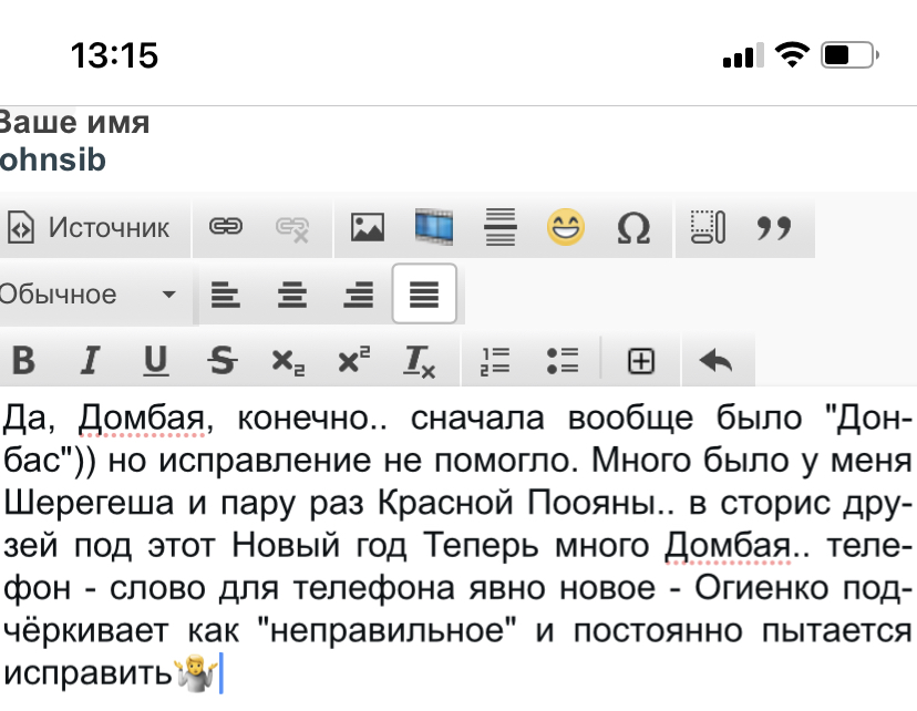 Да, Домбая, конечно.. сначала вообще было "Донбас")) но исправление не помогло. Много было у меня Шерегеша и пару раз Красной Поояны.. в сторис друзей под этот Новый год Теперь много Домбая.. телефон - слово для телефона явно новое - Огиенко подчёркивает как "неправильное" и постоянно пытается исправить🤷