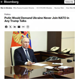 15 января Bloomberg: По словам людей, знакомых с этим вопросом, Россия будет требовать от Украины резко сократить военные связи с альянсом НАТО и стать нейтральным государством с ограниченной армией на любых переговорах с новым президентом США Дональдом Трампом.