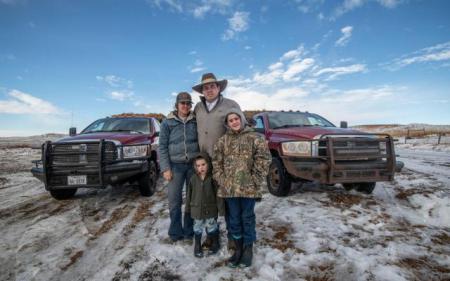 На Фенстера работают семь человек, но его 30-летняя жена Михаэлла делит с ним большую часть работы, а также воспитывает троих их сыновей и иногда работает по ночам за барной стойкой в отеле. Их дети - младшему всего четыре месяца - сопровождают их, когда они едут по ранчо в грузовиках, перевозящих тюки с высокобелковым кормом из люцерны.