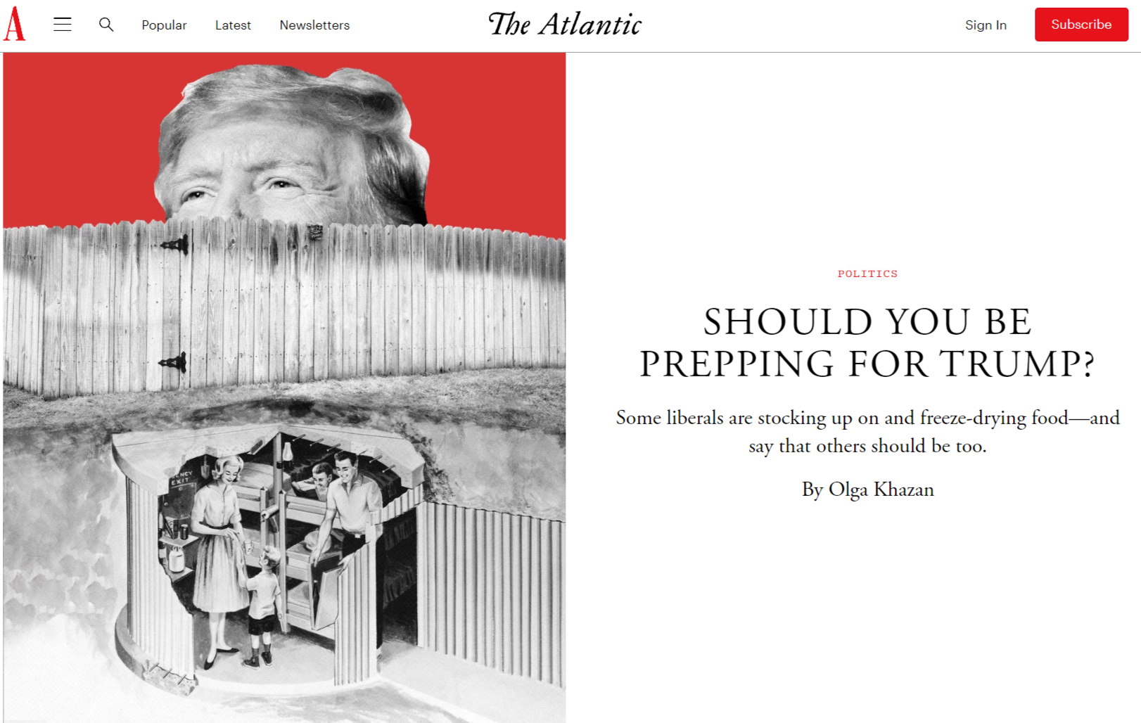 The Atlantic: Джули Гиттингер, профессор религиоведения в Колледже Джорджии, является выживальщиком, но, в отличие от стереотипного образа, который обычно возникает при упоминании этого термина, — закопавшегося в бункере правого конспиролога, — Гиттингер придерживается либеральных взглядов. Она начала готовиться к чрезвычайным ситуациям после избрания Дональда Трампа в 2016 году. Среди её запасов для чрезвычайных ситуаций есть таблетки экстренной контрацепции "Plan B", которые она купила перед второй инаугурацией Трампа на случай, если его администрация введёт новые ограничения в сфере репродуктивного здоровья.