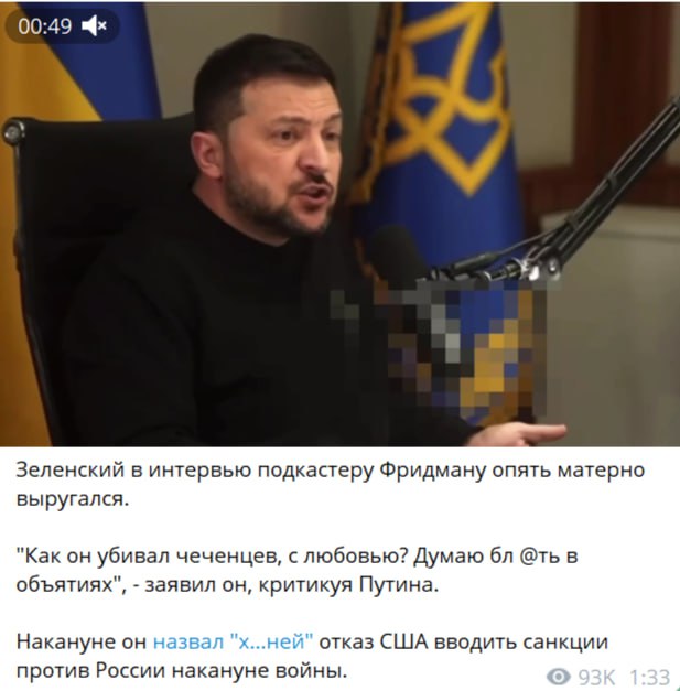 Американский подкастер правого толка - Лекс Фридман брал интервью у Зеленского 6 января, и оно вышло довольно комплементарным. Хоть Зеленский и матерился, Фридман не одергивал его напрямую, лишь пытался скорректировать его повествование.