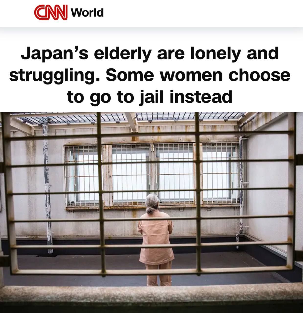 В светло-розовых стенах тюрьмы и странно спокойных коридорах CNN встретил Акиё, 81-летнюю заключенную с короткими седыми волосами и руками, усеянными пигментными пятнами. Она отбывала срок за кражу еды из магазина.