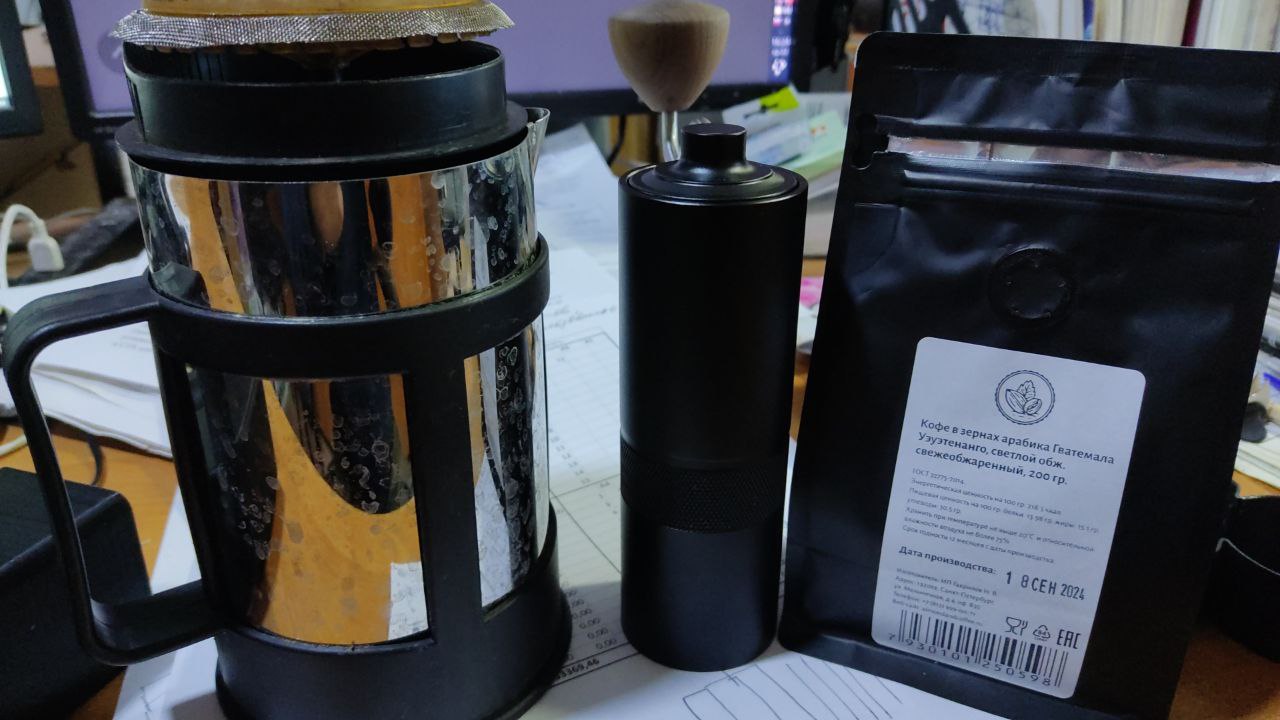 из покупного лишь кофемолка и сам кофе, колба френч-пресса сварена в гараже и засунута в подстаканник от разбитого.