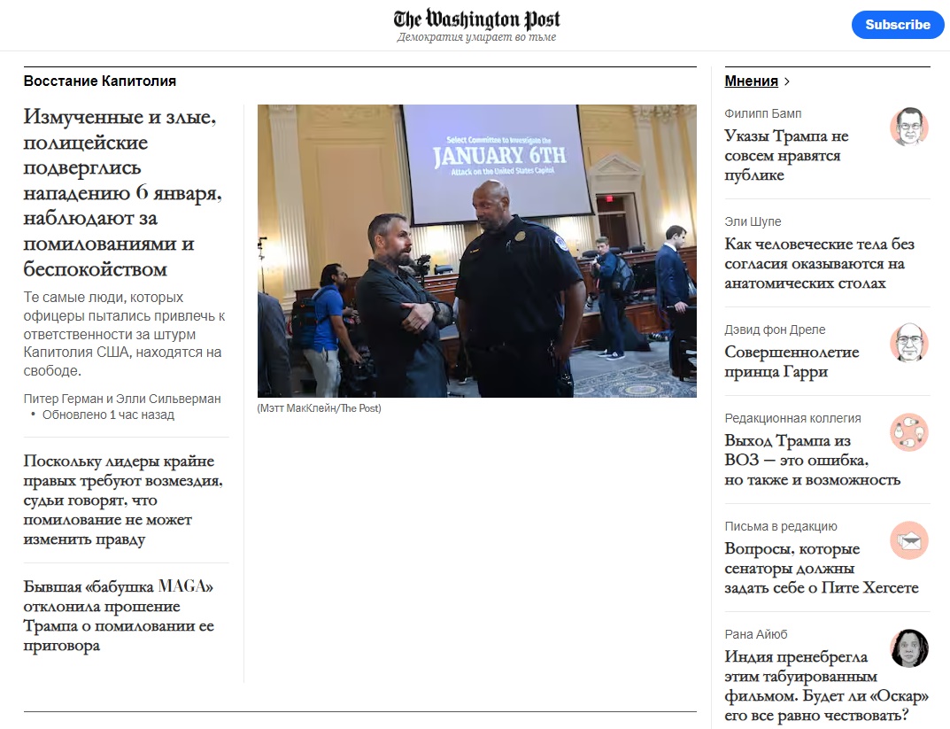 Из "Вашингтон Пост". Это издание явно не сторонник Трампа. Однако констатация фактов видео материалов внешне нейтральная-было и было, не к ним претензии. Но под заголовком - "Демократия умирает во тьме"...
