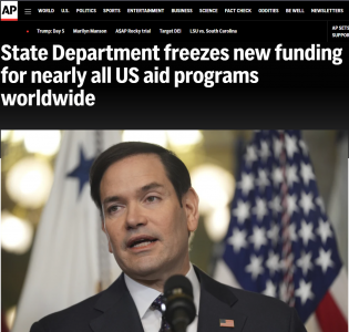 Объясняю. Сперва указ Трампа, а потом на его основании Госдеп начинает вводить свои приказы. Это называется бюрократическая вертикаль. Госдеп потому, что помощь в целях развития это его вотчина, через орган АМР США (USAID). Военная помощь и военное финансирование Украины (и всем иным) это Министерство обороны. Указа о приостановке военной помощи не было, так что она продолжается.