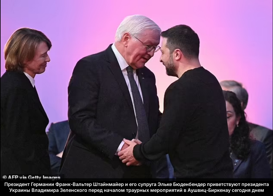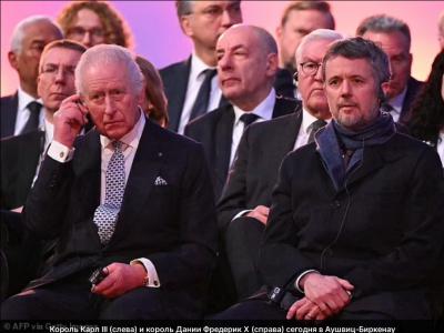 Британцы полякам показались "слаще". Но будучи союзниками англичане, американцы да и французы их кинули. Они предпочли не ввязываться в события в Польше, нарушив тем самым союзнические обязательства в отношении Варшавы. Ни оружие не дали, ничего, только объявили "войну" Германии, которая затем называлась "странной" войной, потому что ничего особенного на ней не происходило. Американцы вообще отправили назад корабль Сент-Луис со спасшимися евреями из Гамбурга, вот такие они великие защитники евреев от Холокоста. А теперь британский король в первых рядах сидит на празднование без настоящих освободителей. Король, чья родня так любил фоткаться с Гитлером. А ещё на церемонии присутствовали президенты Германии Франк-Вальтер Штайнмайер и Франции Эммануэль Макрон, канцлер Германии Олаф Шольц и президент Европейского парламента Роберта Метсола. К королю Карлу присоединятся монархи из Испании и Нидерландов. И даже нацист Зеленский тоже до кучи был там. Как верно заметил историю А. Дюков "В итоге на памятной церемонии в Освенциме на уровне глав государств собрались наследники тех, кто строил концлагерь, тех кто охранял и тех, кто депортировал своих граждан в концлагерь..."