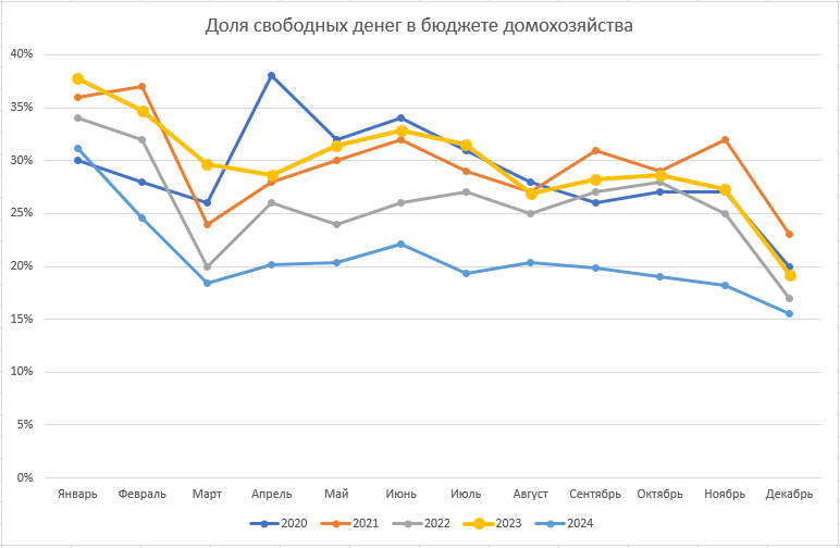 Корректное замечание. Добавил график с долей свободных денег в бюджете домохозяйства.