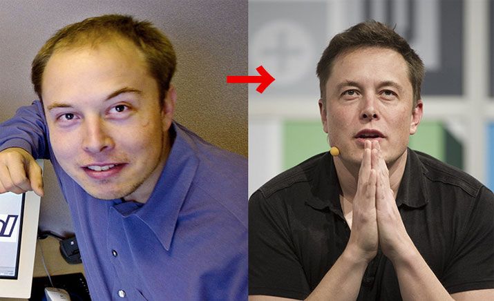 Да, Маску похоже волосы пересадили. В молодости он почти лысый, а в старости с пышной шевелюрой.