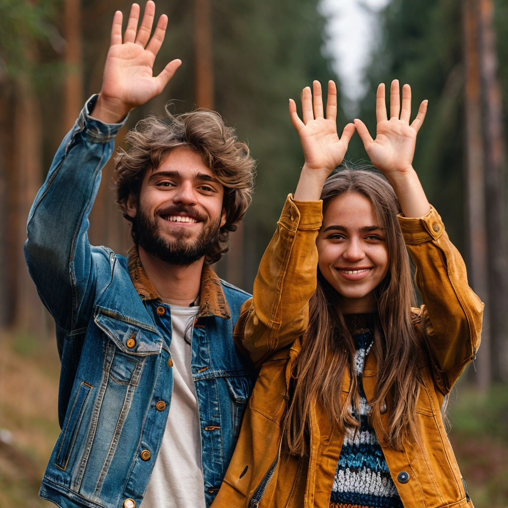 05 Парень и девушка подняли руки 5 пальцев
