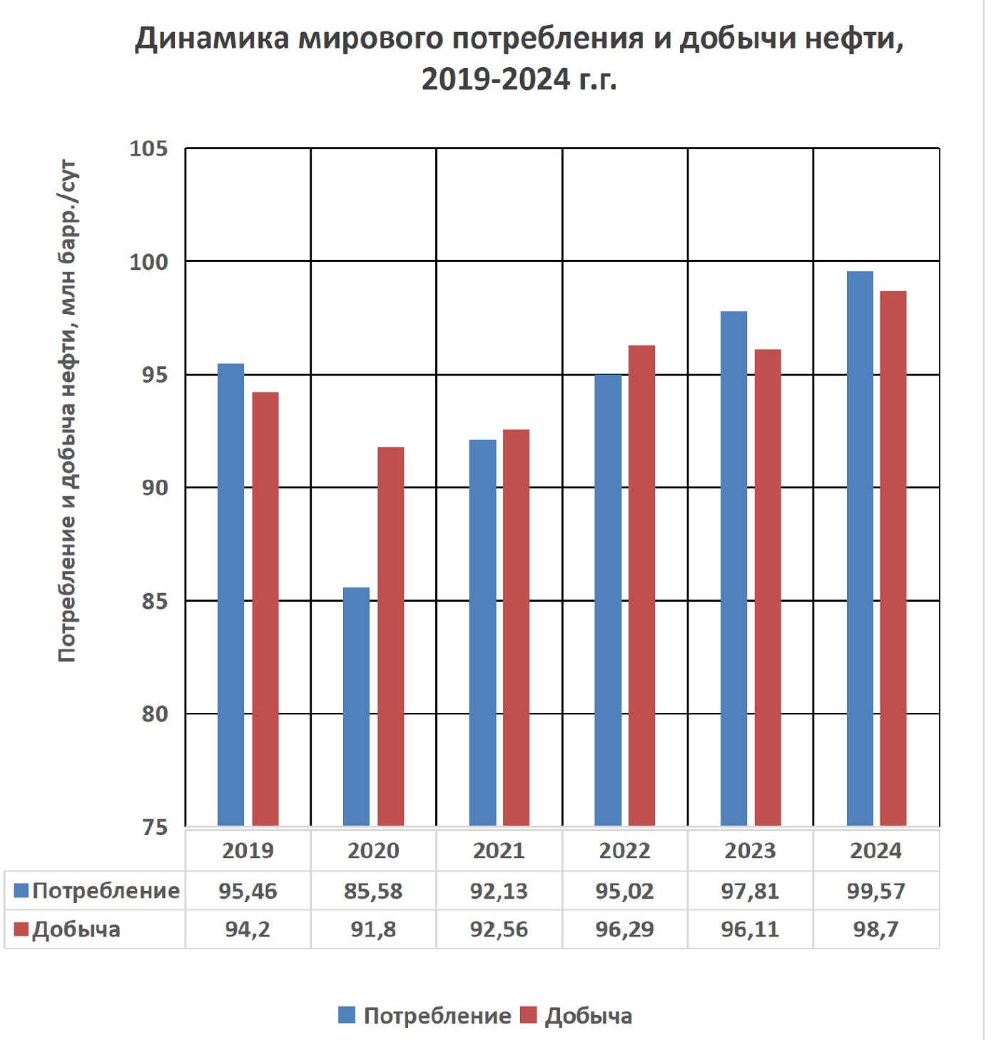 Тут та же история: ОПЕК приписывает Америке в 2024 г. 21,7 млн барр./сут добычи (но уже не нефти, а «нефтесодержащей жидкости»). После отделения мух от котлеты среднегодовая добыча сырой нефти оказывается 13,17 млн барр./сут. Проиллюстрирую это рисунком 1: