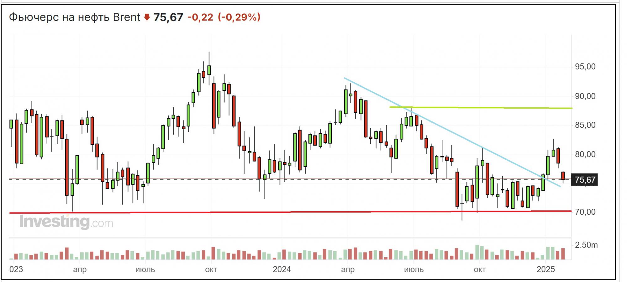 Нынешние колебания нефтяных котировок в пределах $70-82 по сорту Brent Россию вполне устраивают. В декабре при этих ценах доходы бюджета достигли рекордных 4 трлн руб. На таких движениях слегка подрос курс рубля, приближая момент снижения ключевой ставки.