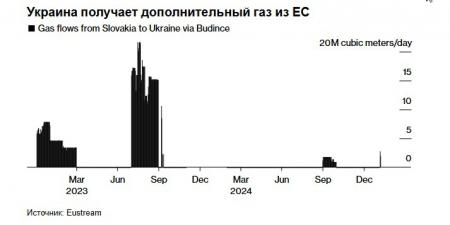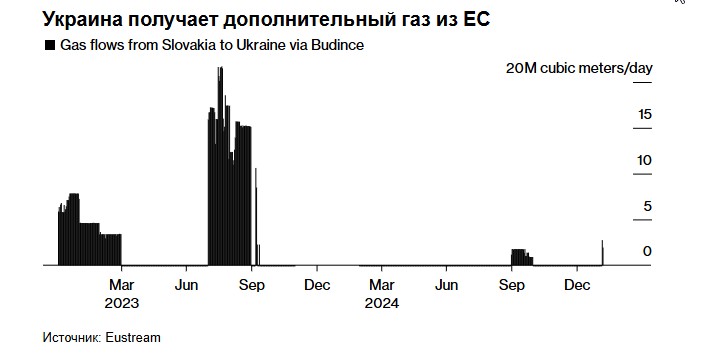 На этой неделе на Украину начали поступать дополнительные объемы газа, а Словакия возобновила поставки через пограничный пункт Будинце впервые с октября, согласно данным ЕС. Словакия, которая по-прежнему выступает за возобновление транзита газа через Украину, в этом месяце начала импорт российского газа через Турцию .