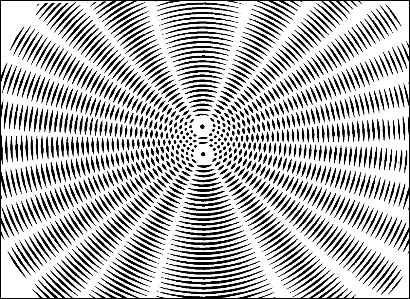 Проблема заключается в том, что Юнг использовал простейший пример, когда генераторы волн синхронизированы друг с другом и работают на одной частоте. В результате получается неподвижная картинка следующего вида: