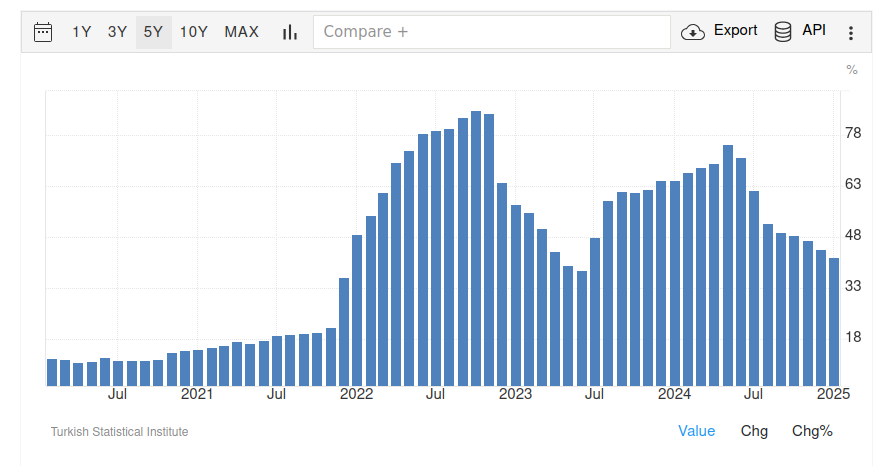 Текущая ставка ЦБ Турции - 45% (просто божественно, инфляция должна в 0.)