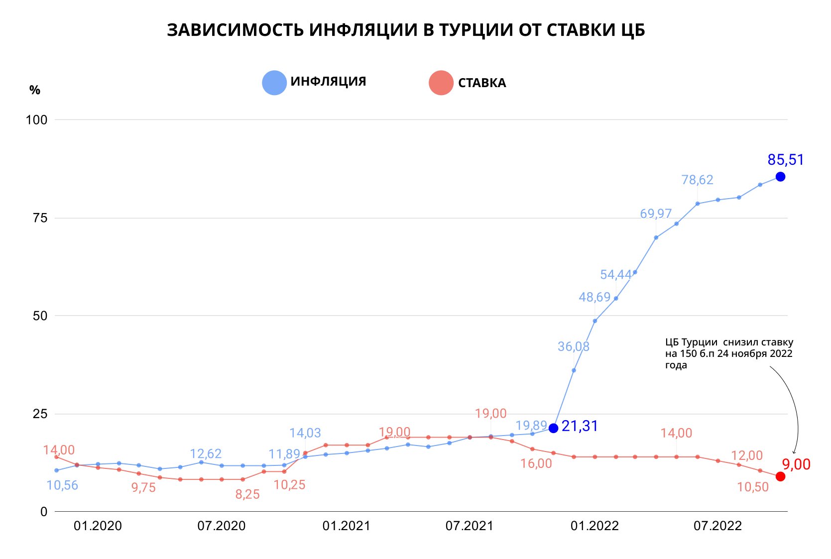 Что касается ваших нефундаментальных новостей - посмотрите на график в 2020 и 2021 году, когда этот ваш турецкоподданный ничего такого не требовал - там четко видна зависимость инфляции от ставки.
