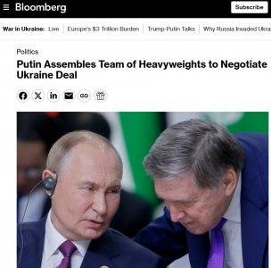 14 февраля Bloomberg: Владимир Путин собирает команду тяжеловесов с многолетним опытом ведения переговоров с высокими ставками, чтобы противостоять представителям президента США Дональда Трампа в борьбе за соглашение о прекращении войны России на Украине. Среди них Юрий Ушаков, его главный кремлевский советник по внешней политике, который более полувека занимается дипломатией, и его главный шпион Сергей Нарышкин, который служил вместе с Путиным в советском КГБ, по словам людей, знакомых с ситуацией, которые попросили не называть их имен, обсуждая внутреннюю информацию.