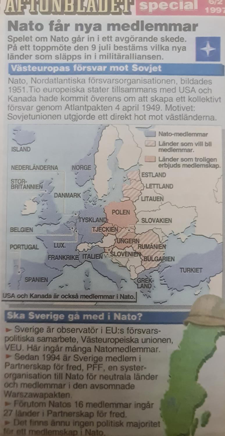 Игра в НАТО идёт дальше. 9 июля 1997 года решено, какие новые страны готовы вступить в альянс. (На картинке штрихом страны , которые хотят, а светло -красным возможные страны).