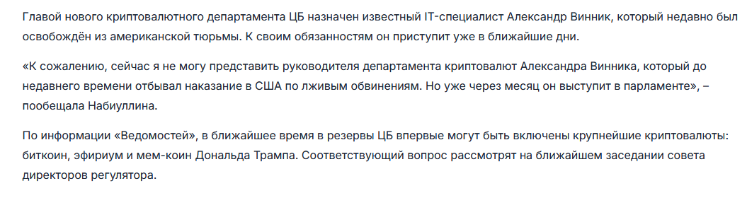 у пиндосов цб крипту будет покупать. Так же как раньше покупал у них доллары